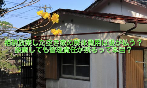 空き家の相続放棄が増えていると言われています。 「放棄=知らぬ、存ぜぬ」と思っている方も多いようですが、実は管理責任が問われることも…。 相続放棄した空き家について、解体費用も含めた正しい知識を身につけておきましょう。 …